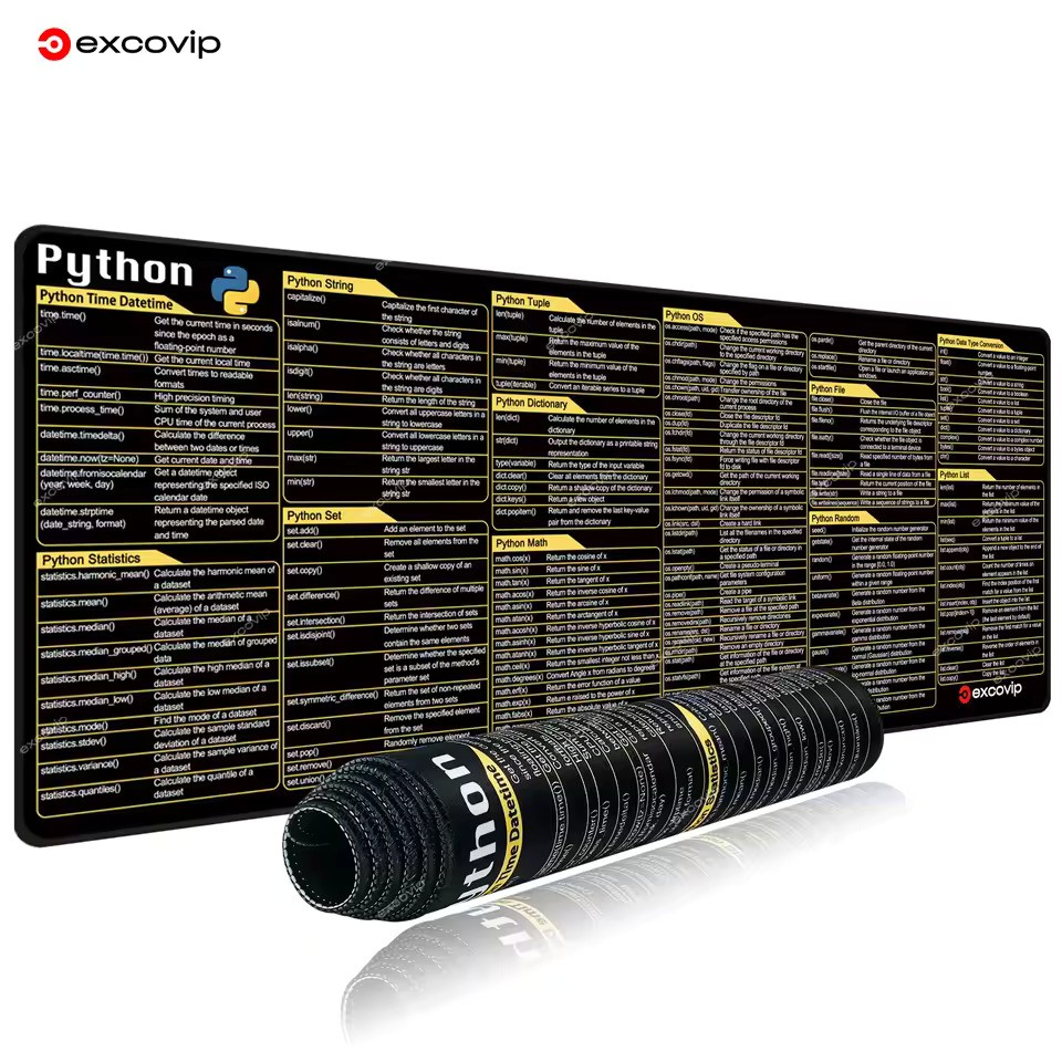 EXCO Python Programing Mouse Pad Large Shortcuts Cheat Sheet Keyboard Mousepad Stitched Edge Non-Slip Base Desk Mat for Engineer